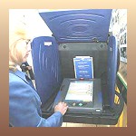 Los ciudadanos fueron invitados a probar una de las cuatro máquinas de votación que resumen las diversas opciones tecnológicas disponibles en el mercado hoy para la emisión electrónica del voto.